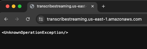 https://transcribestreaming.us-east-1.amazonaws.com should return