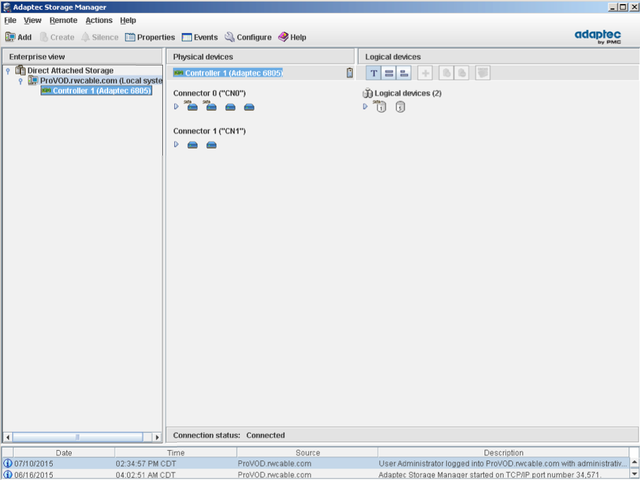Tightrope Media Systems has used 3 different RAID controllers in their SX2 and SX4 video servers and their ProVOD servers. One of the RAID controllers is from Adaptec. This can be managed on your server by using Adaptec Storage Manager.