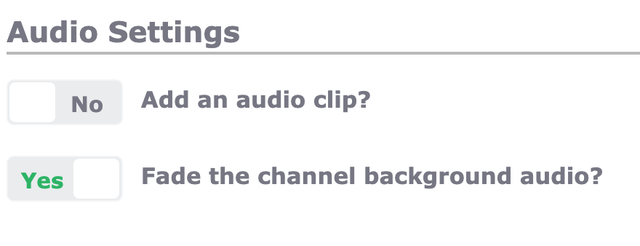 - scroll down to Audio Settings and select Fade Channel Background Audio.