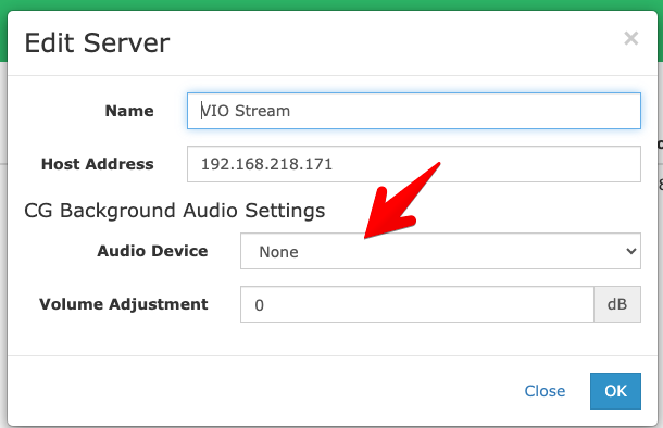 Now you are able to play Line-in audio with your new VIO server and Cablecast CG.