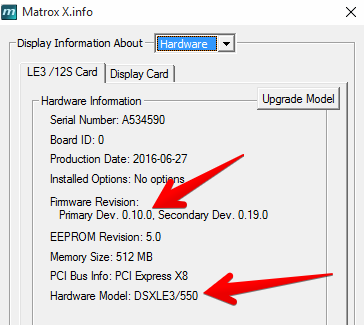 How do I validate which Matrox card and Firmware version is present in my Cablecast or Flex server?