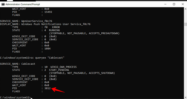 - Look for the PID field and note the number below for the next step. It will be different in your case from the image provided
