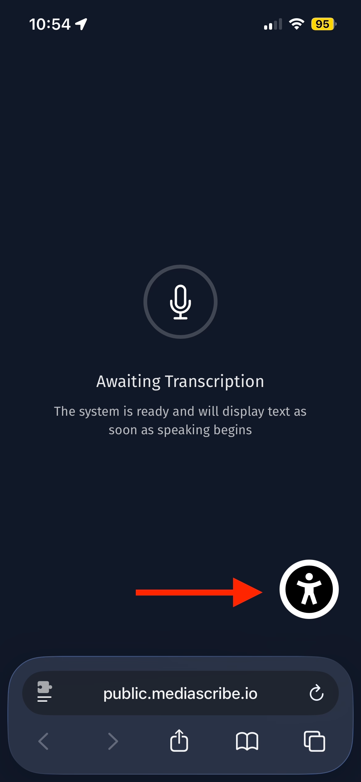 To enable Voice, tap the Accessibility Settings icon from the MediaScribe UI on your mobile device.