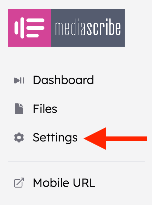 To enable MediaScribe Voice, navigate to Settings in the left-hand menu.