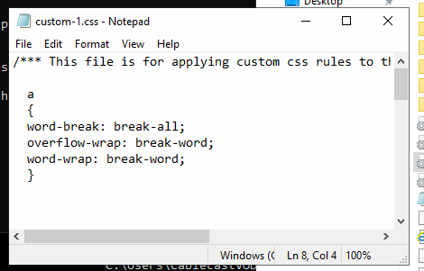 Modify each .css file (Right click / edit) to add the above CSS snippet, and save the file (Do not rename the file).